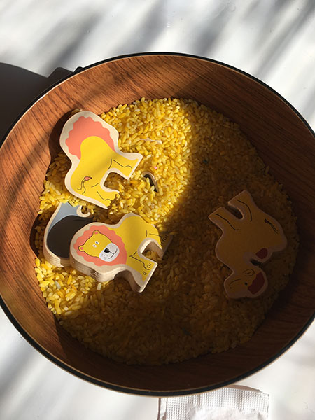 Duyusal oyunların ucuz ve eğlenceli yollarından biri Pirinçleri renklendirerek oynanan oyunlardır. Aynı işlemi kuru fasulye, makarna içinde kullanabilirsiniz. Renklendirmenin birçok yollunu denedim ama bu yol renklerin sabit kalmasını akmamasını sağlıyor